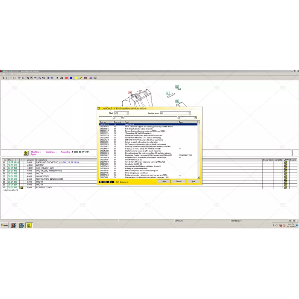 This program includes service and repair information, operator´s manuals, adjustment protocols, repair instructions, technical descriptions for lierbherr machine.