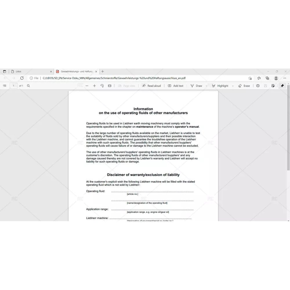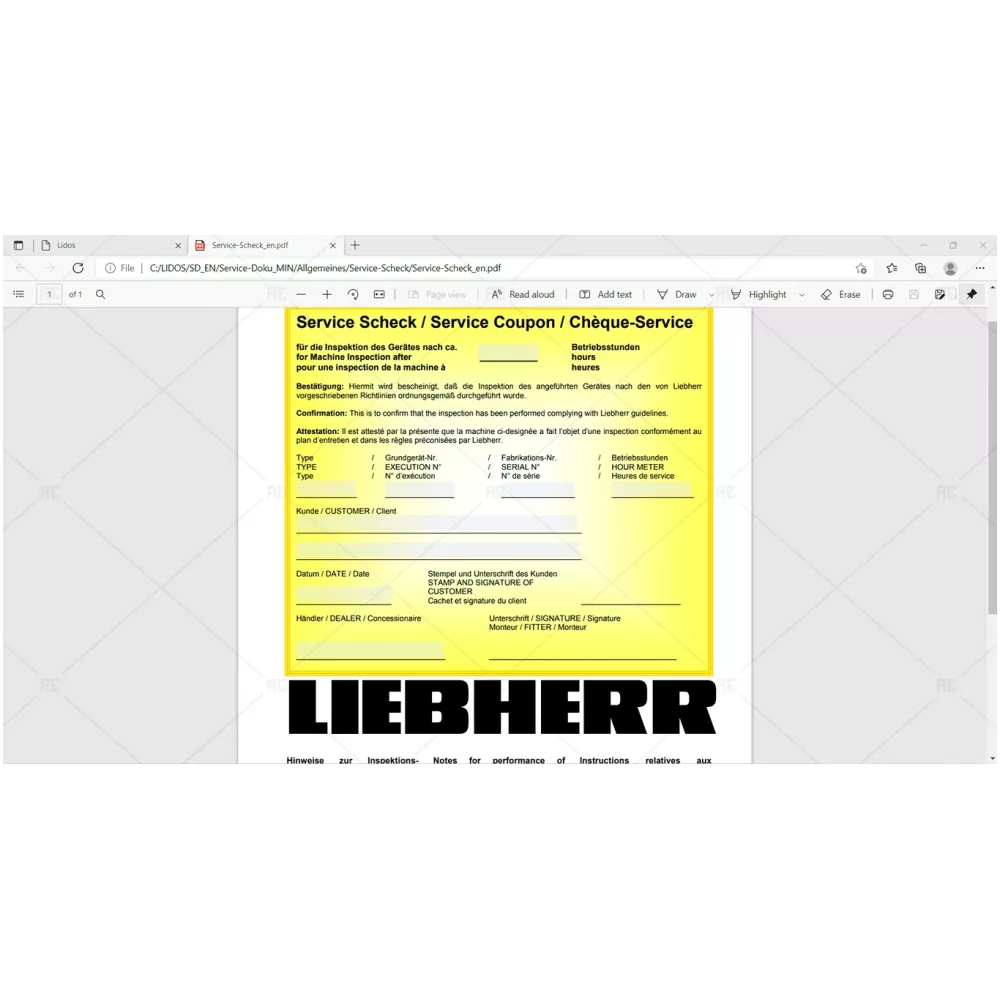 LIEBHERR LIDOS SERVICE DOCUMENTATION MINING EQUIPMENT ENGLISH OFFLINE 2022.03