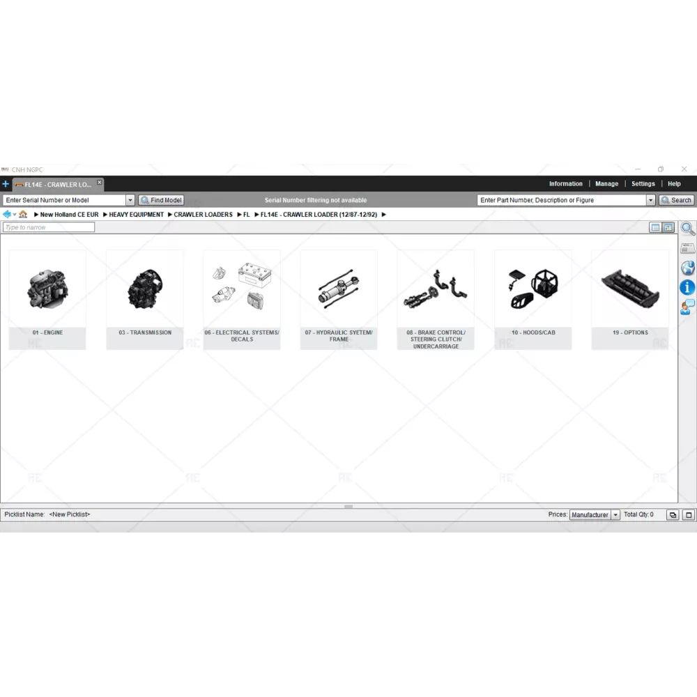 Spare parts catalog for new holland construction equipment. This parts catalog contains information for european models of new holland equipment.