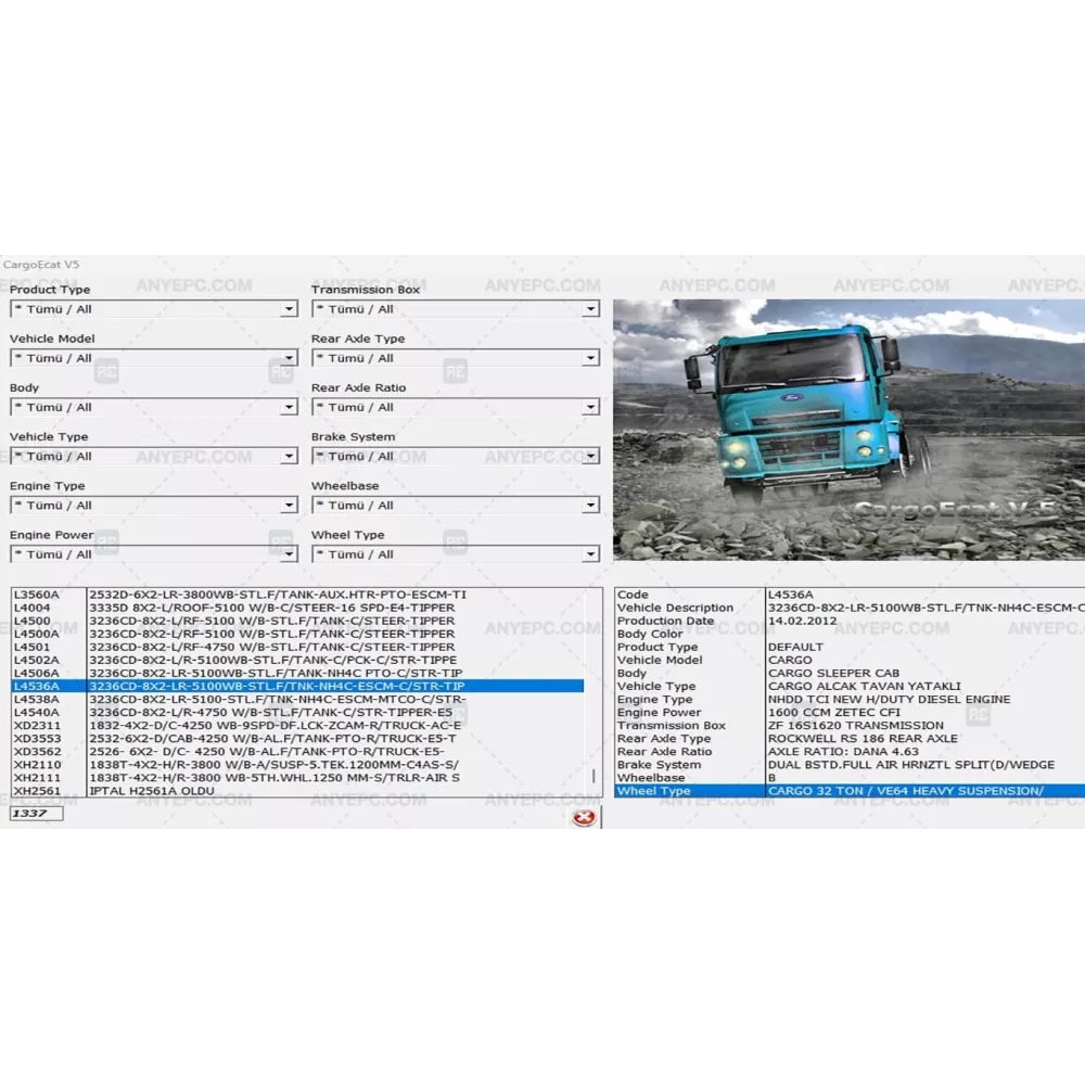 Cargo ECAT V5 is a parts catalog software for Ford Cargo Otosan Trucks.