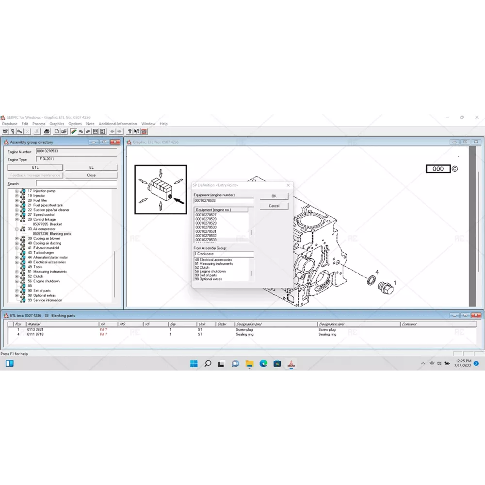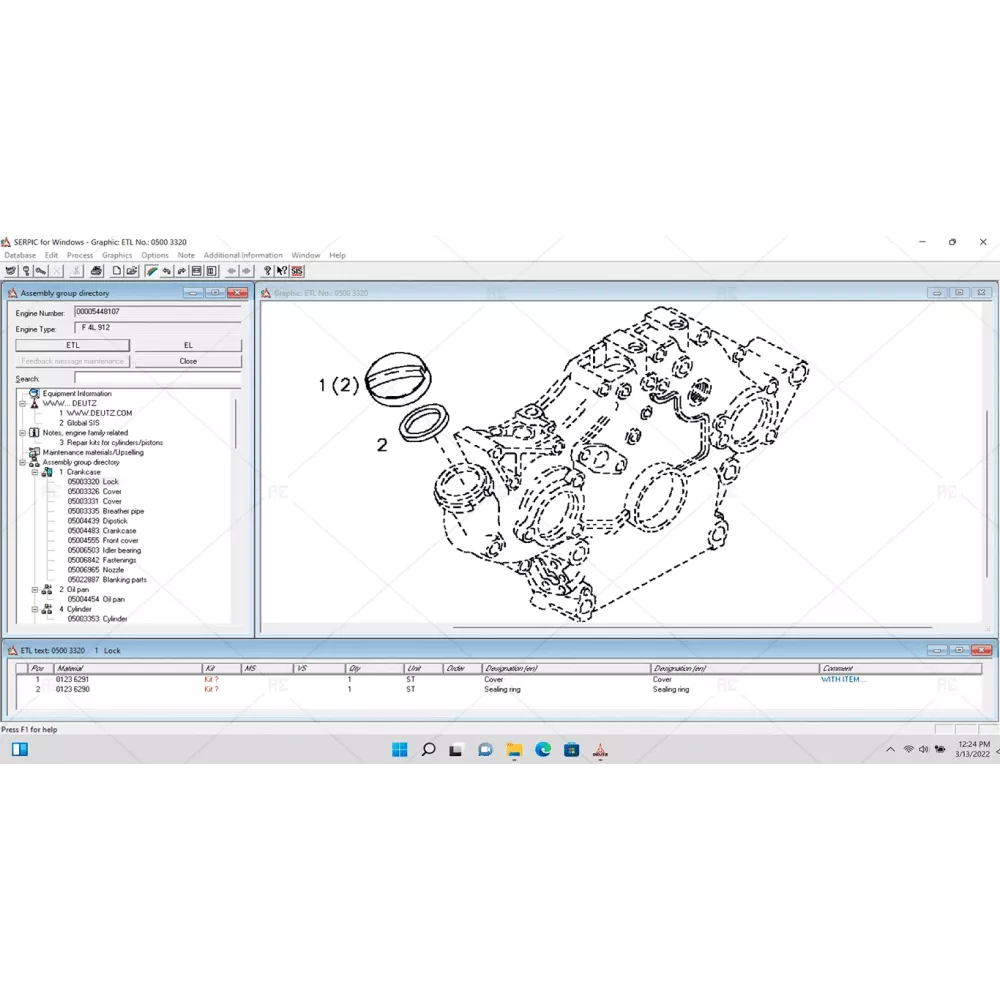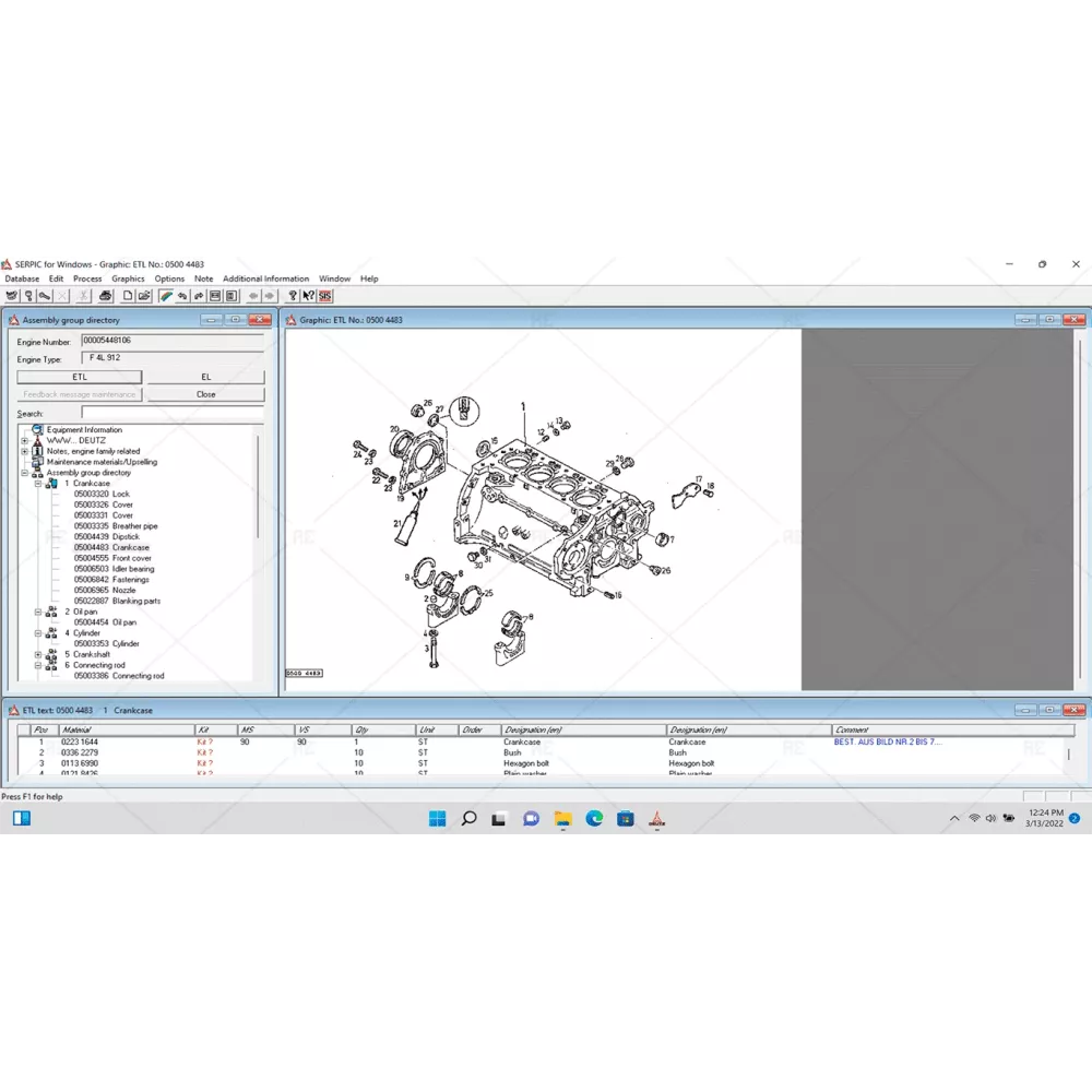 Deutz Serpic EPC is an electronic spare parts catalog for all models of deutz diesel and gas engines, produced before 2012, combining outstanding performance and high reliability.The program Deutz Serpic 2012 is very simple and easy to use because it is a search and decoding parts of the model, serial number, engine, engine type, by product number, description of spare parts.The electronic catalog contains 2012 Deutz Serpic Service bulletins, the layout of all components, dimensions and required a special tool. Deutz Serpic 2012 allows you to easily and quickly find the necessary information of interest to the owner of the equipment, which will give clear instructions for operation of equipment Deutz.The kit Deutz Serpic 2012 also includes a catalog of illustrations with which the user can visually see of a piece of agricultural equipment Deutz and determine the place of installation or removal of any items of special equipment.