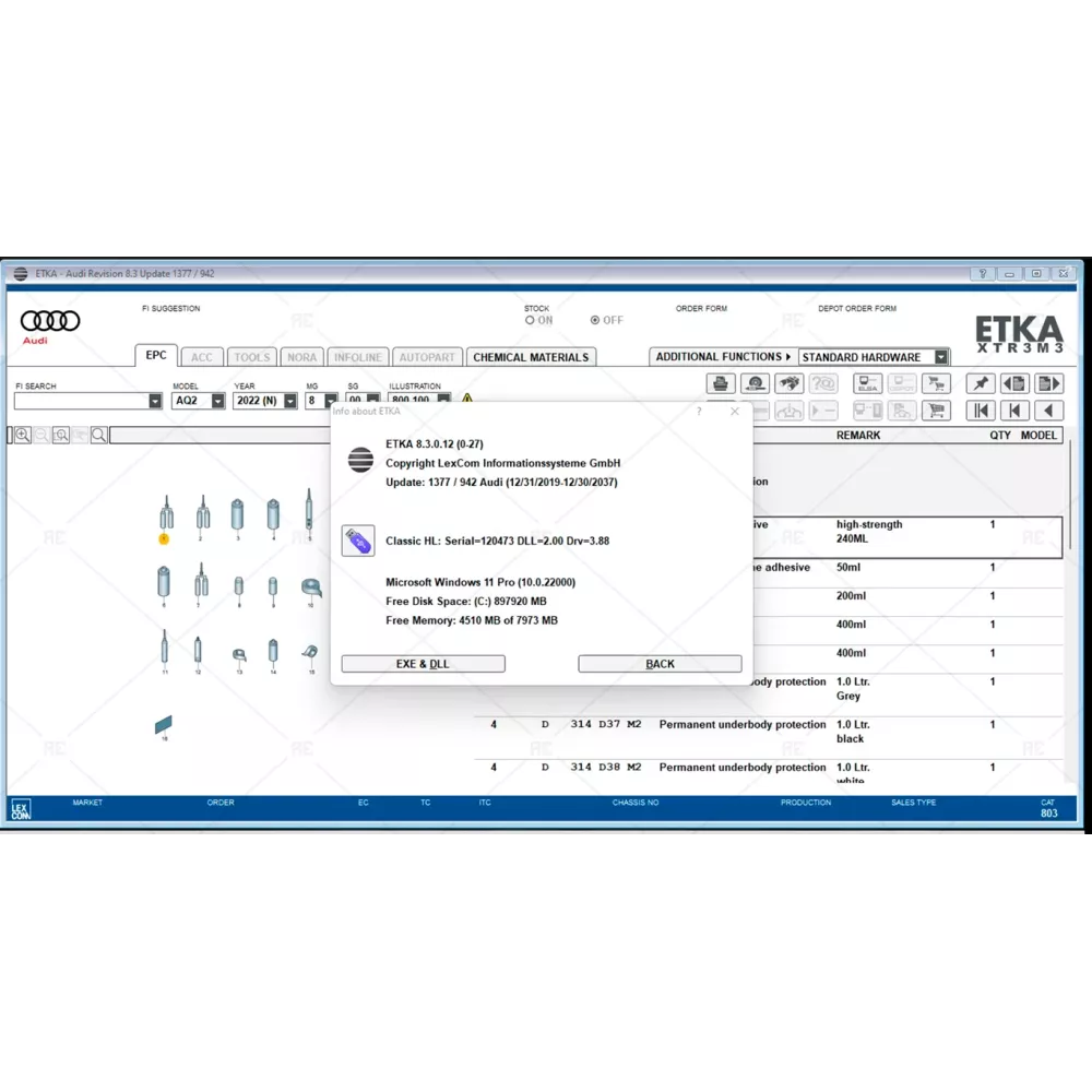Etka 8.3.0.12 contains complete information on spare parts and accessories for cars of the company audi.
