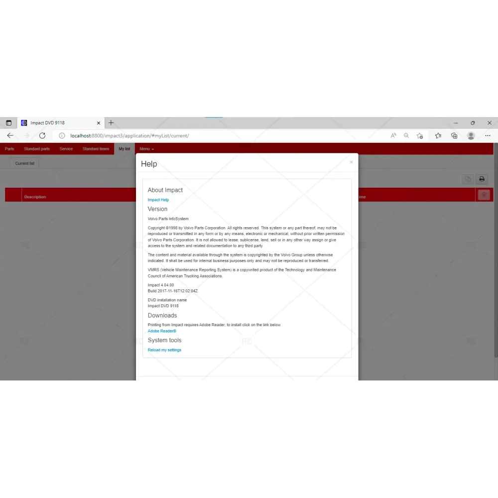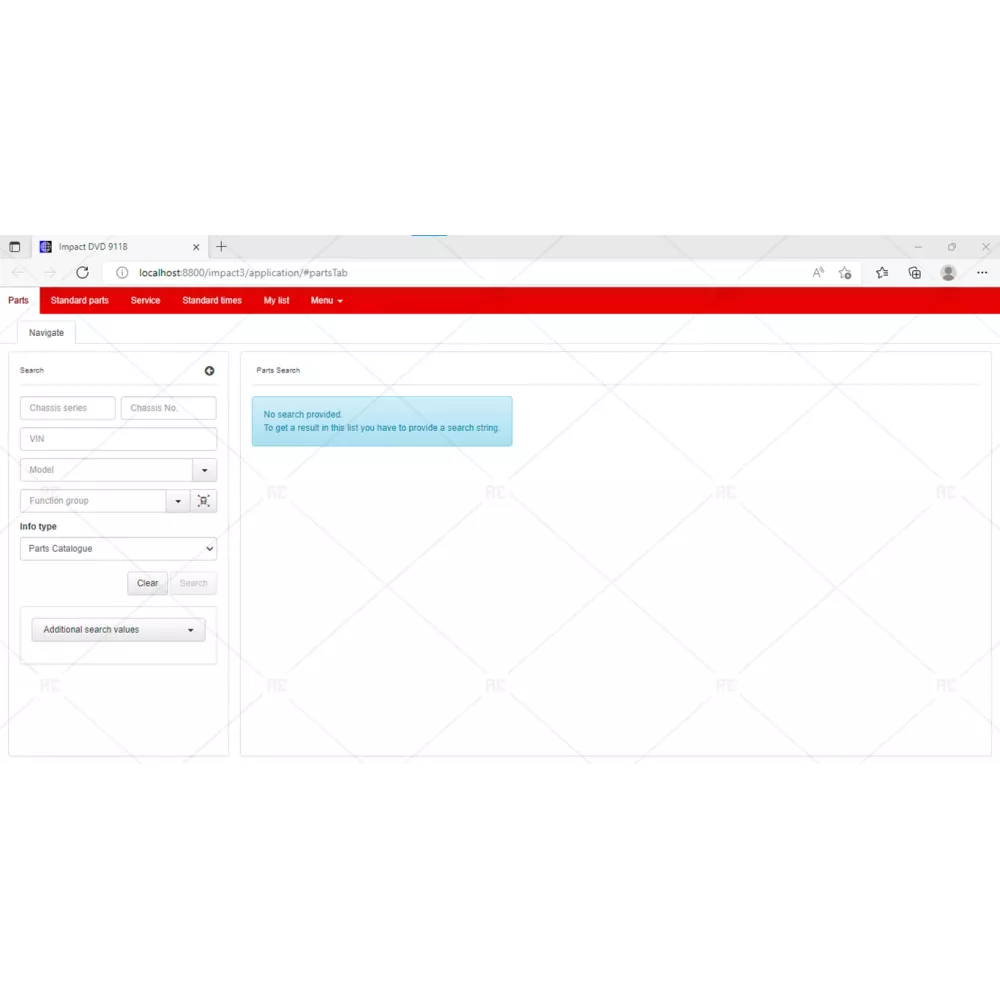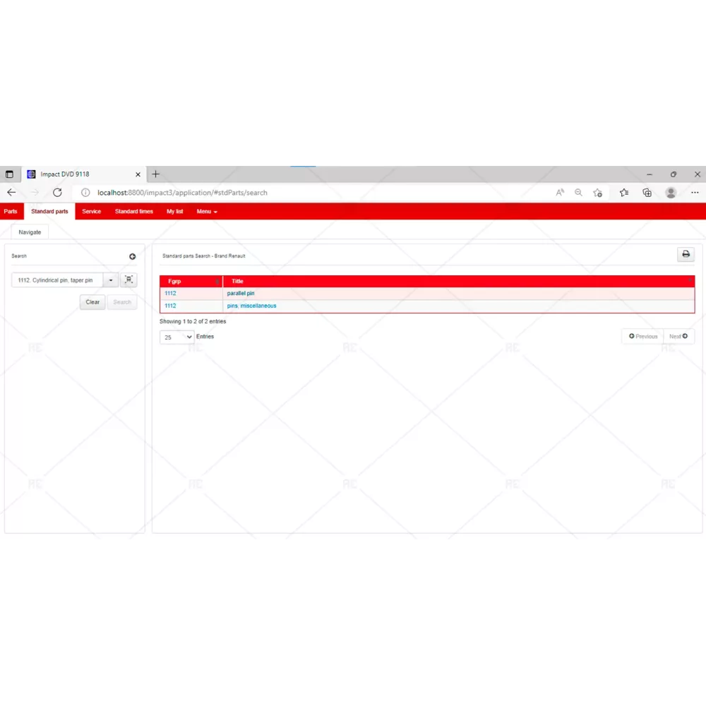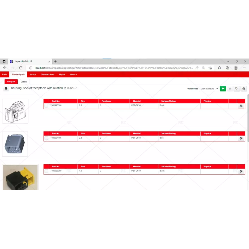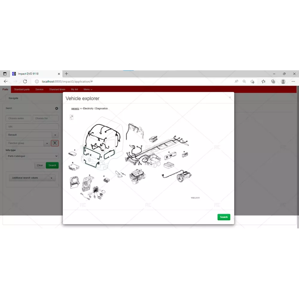 This renault impact is a web-based system that supports the workshops with information about parts, components, standard parts, services, standard time, and tools.
