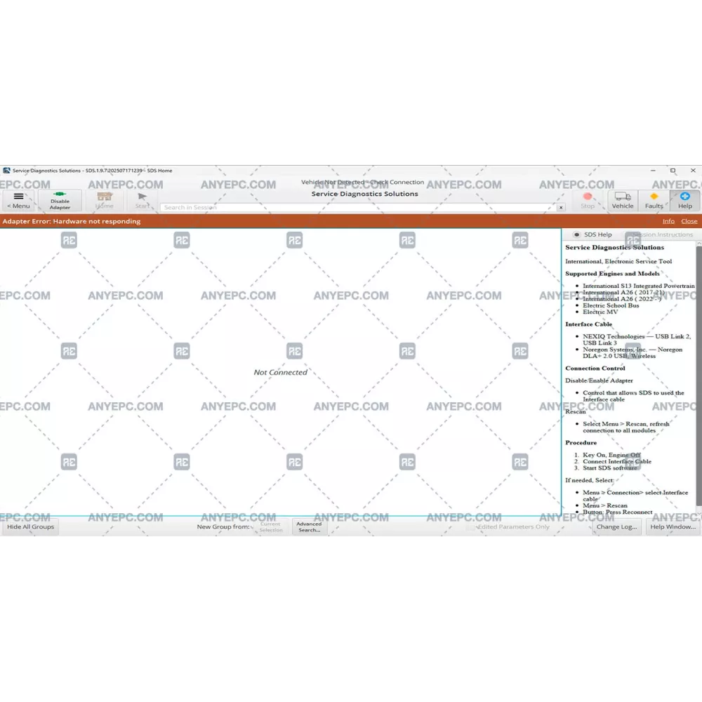 Service diagnostics solutions (sds) is navistar's vehicle and engine diagnostic and programming service tool, allows you to monitor control systems, retrieve diagnostic trouble codes (dtcs), change parameters, view and graph data, and run tests specialized service bay systems.