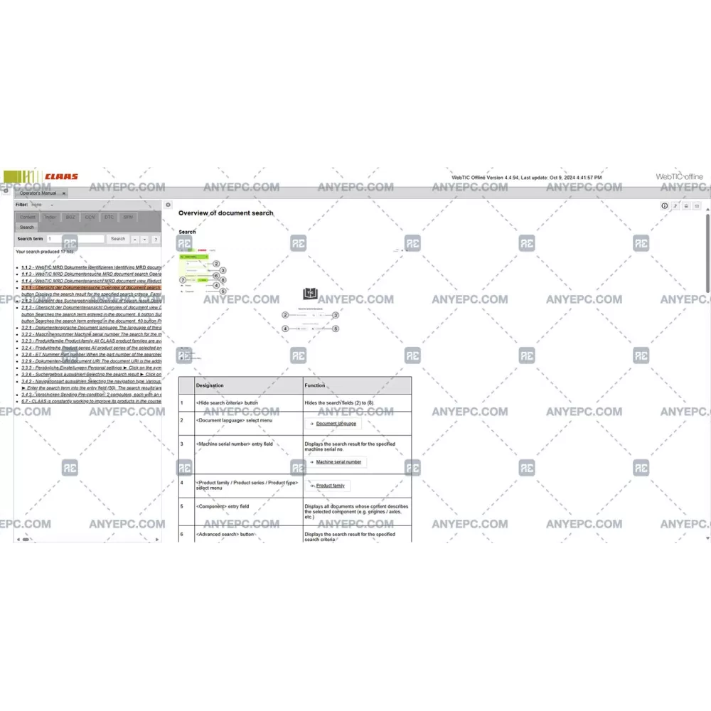 Claas webtic offline contains repair and service information, operator manuals, repair manuals, service documentation for all models of claas agricultural equipment, including forage harvesters, combines, balers and tractors.