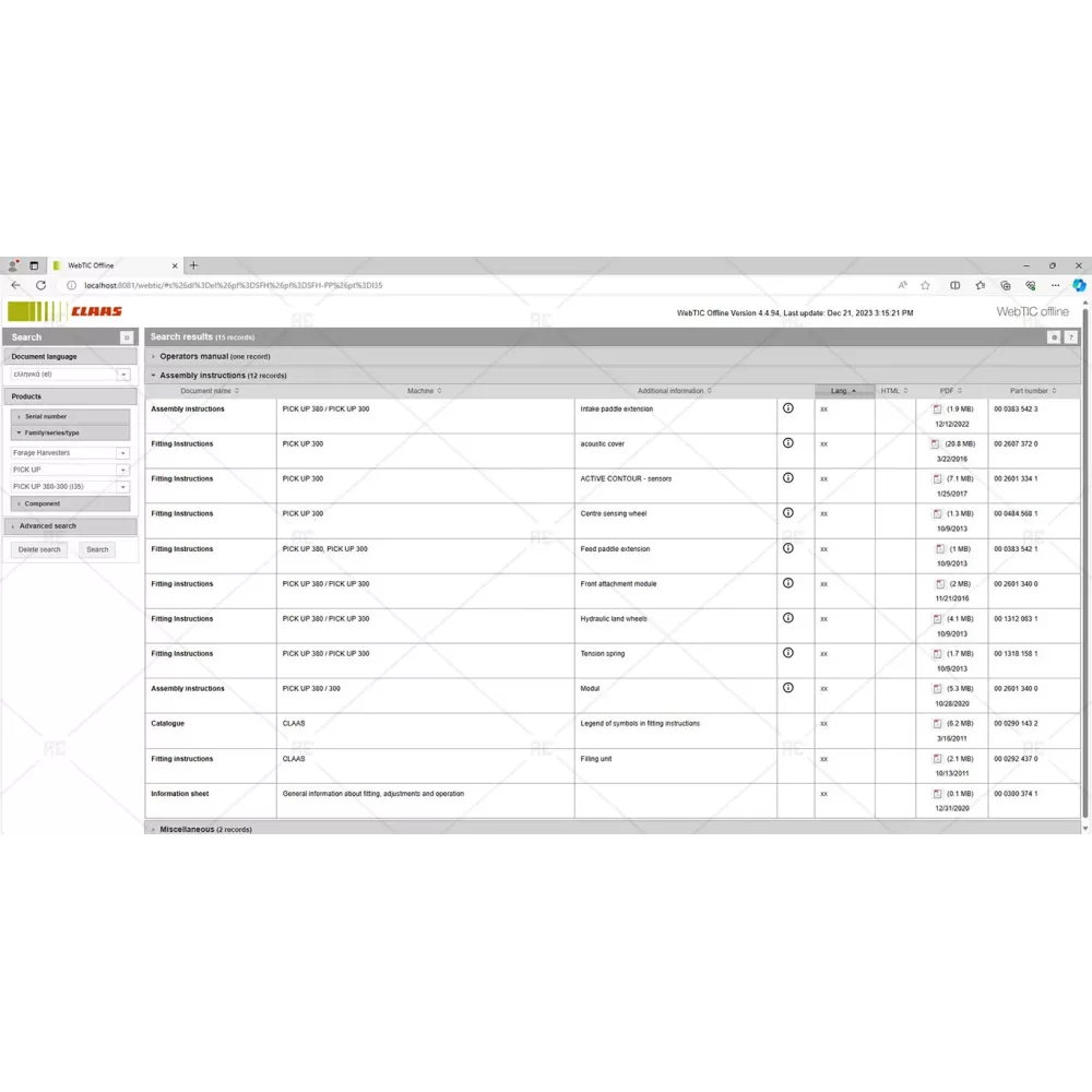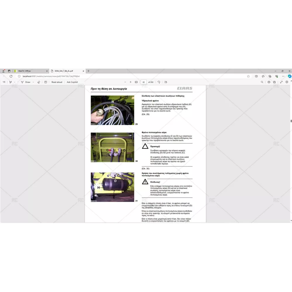 Claas webtic offline contains repair and service information, operator manuals, repair manuals, service documentation for all models of claas agricultural equipment, including forage harvesters, combines, balers and tractors.