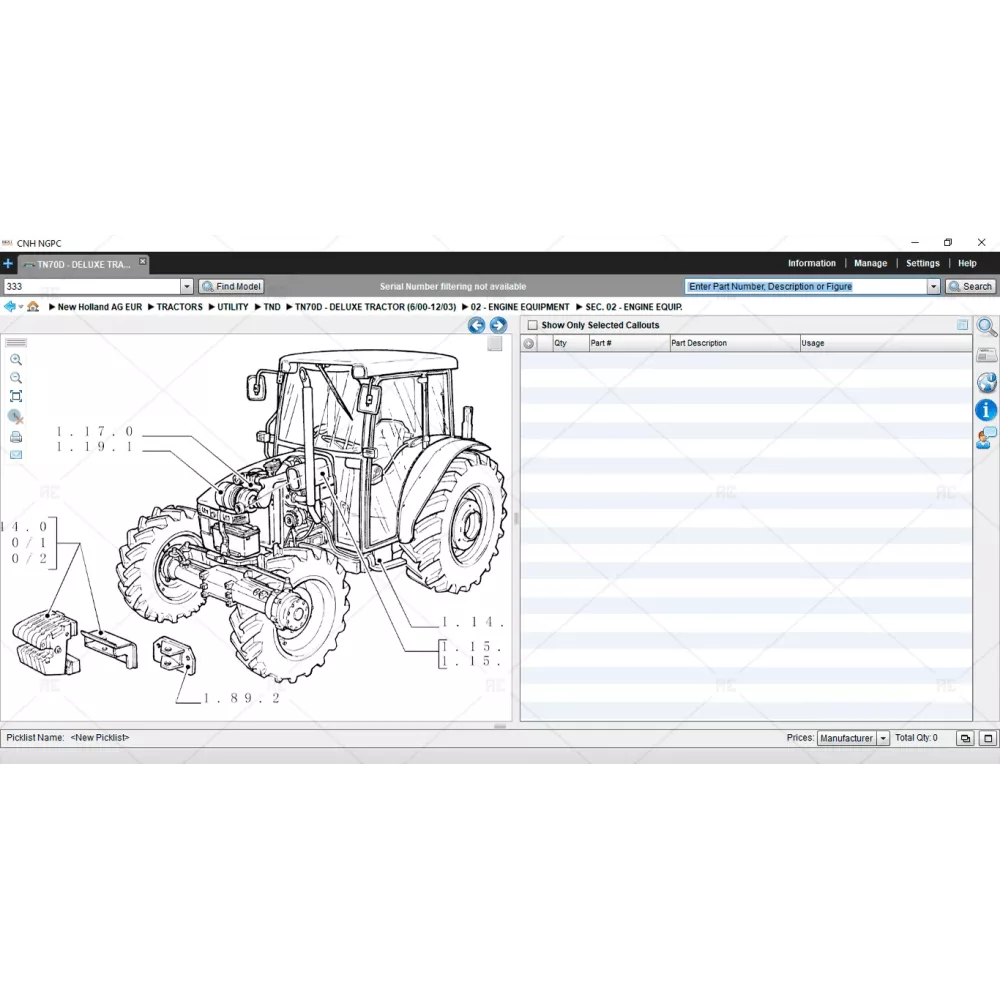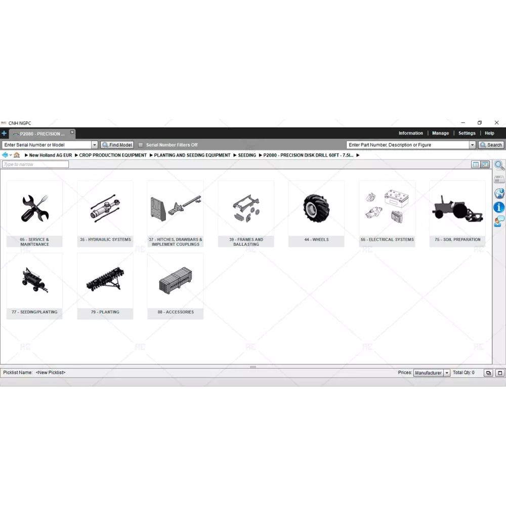 This new holland parts catalog contains technical data, service bulletins, marketing documents, installation instructions and other documents. In addition, this program contains a detailed user guide, which will significantly simplify work with the parts catalog. It describes all the possible types of searching for spare parts and other information needed for working with the program.