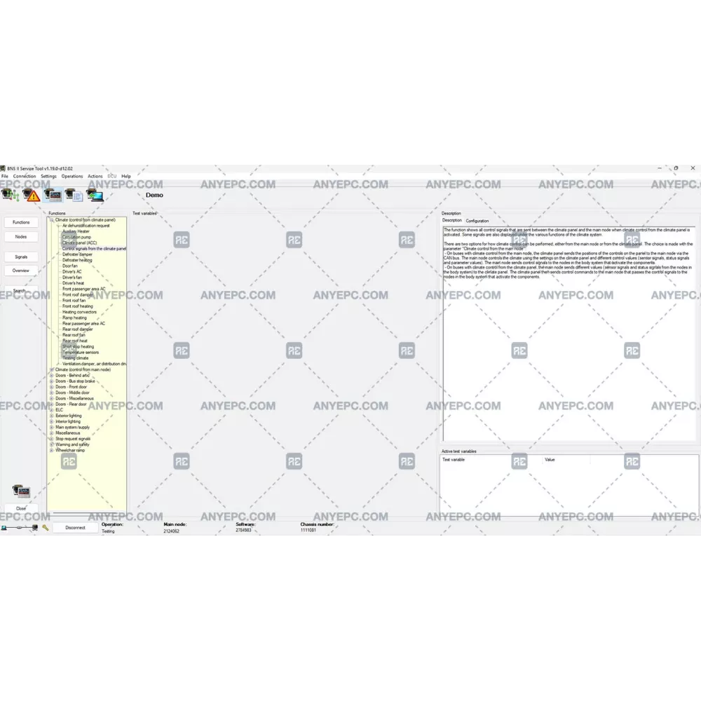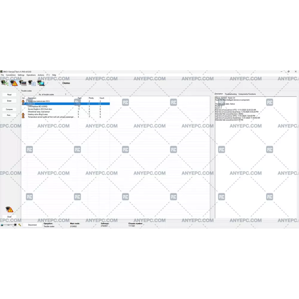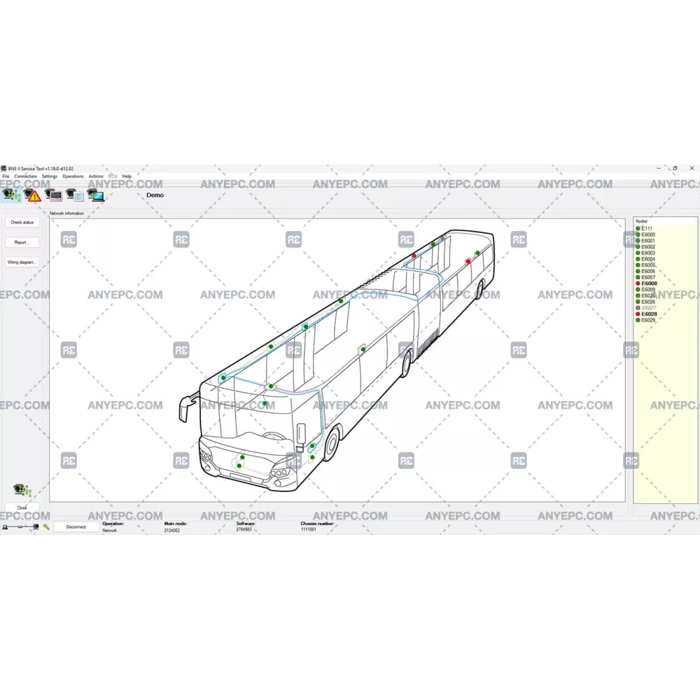 The Scania BNS II Service Tool (BST) is a software program designed for diagnosing, fault locating, and reprogramming the BNS II multiplexed body system used in Scania OmniCity/Link and Citywide buses.