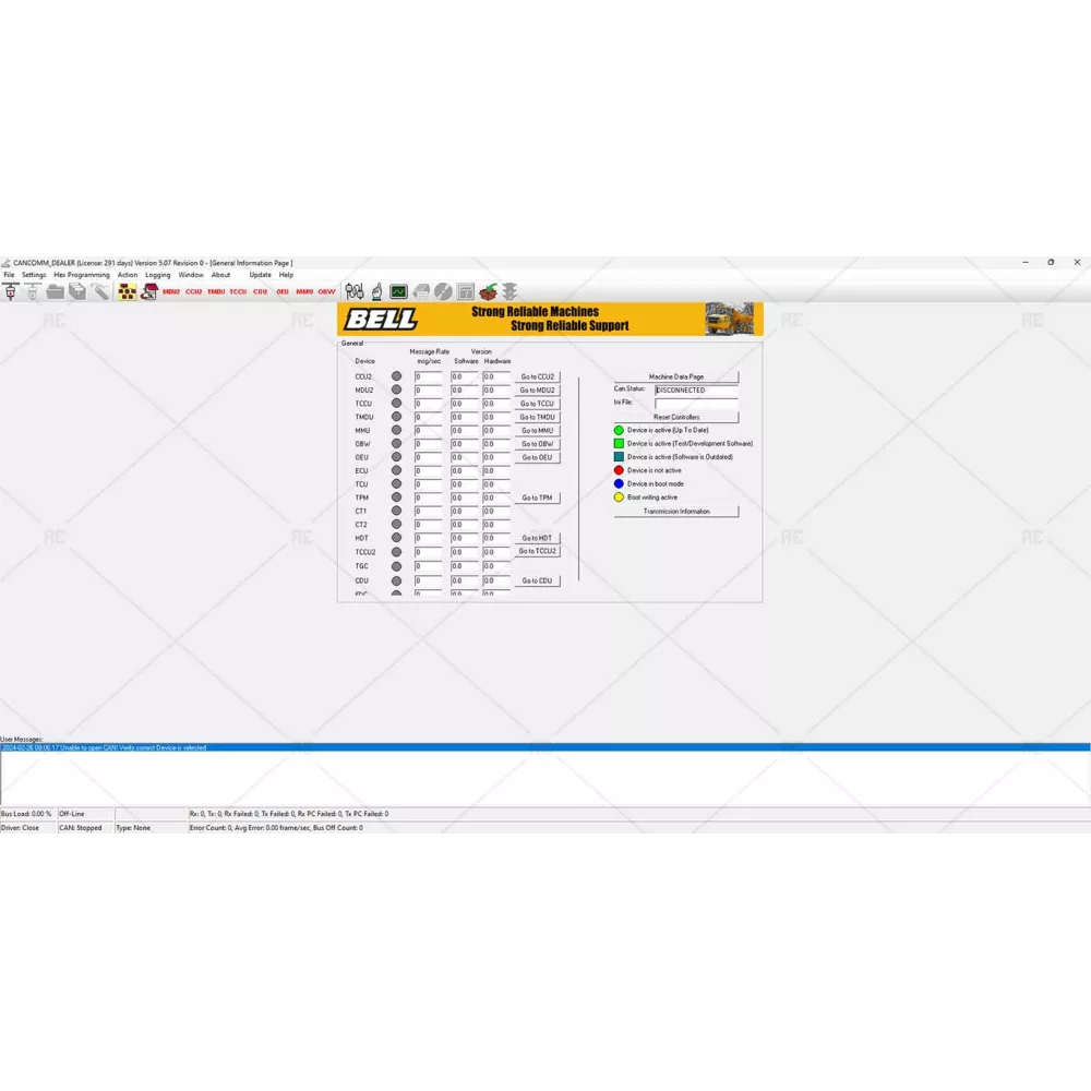 The Bell Cancomm manual states that it is compatible with rp1210 adapters but these have not yet been tested.