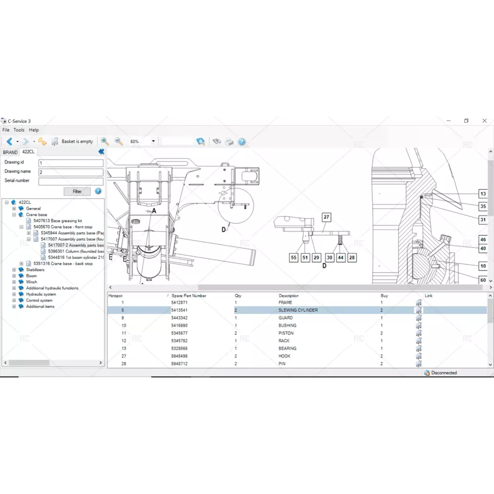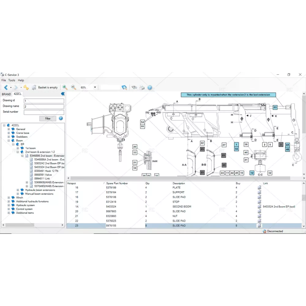 Electronic program hiab c-service includes a detailed catalog of original spare parts, repair manual, which contains a complete set of descriptions of the technical characteristics of the machinery spare parts, step by step instructions for their operation, special instructions for repair, diagnostics, installation instructions, service information crane hiab.